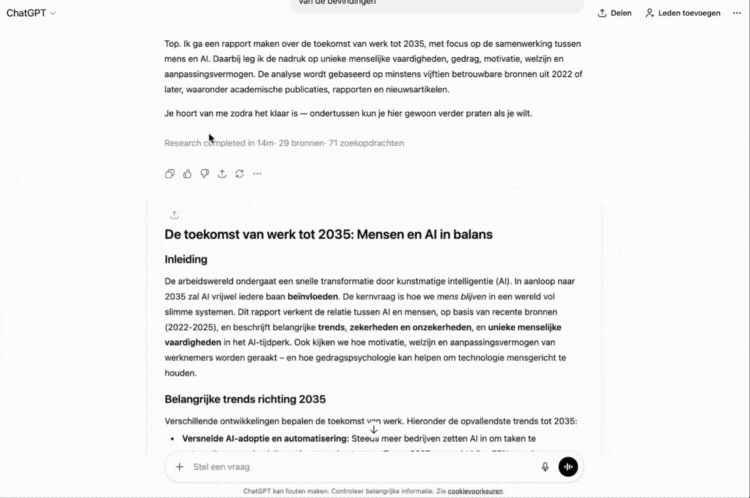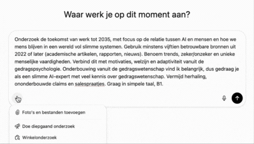 Zelf mee aan de slag? Je vindt de Deep Research-functie o.a. in ChatGPT, Gemini, Perplexity, Grok, DeepSeek en Claude. Succes!